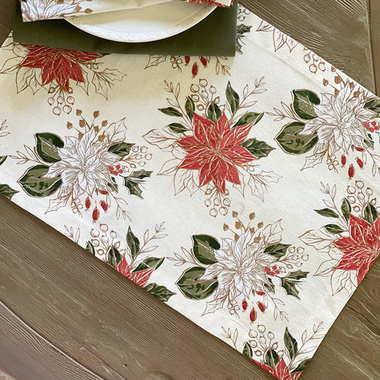 Embroidered Cotton Holiday Dinner Napkins - Set of 4