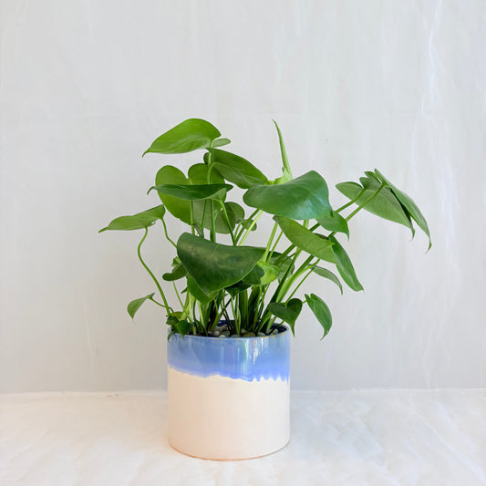 6" Zebra Plant in Blue Glazed Ceramic Pot