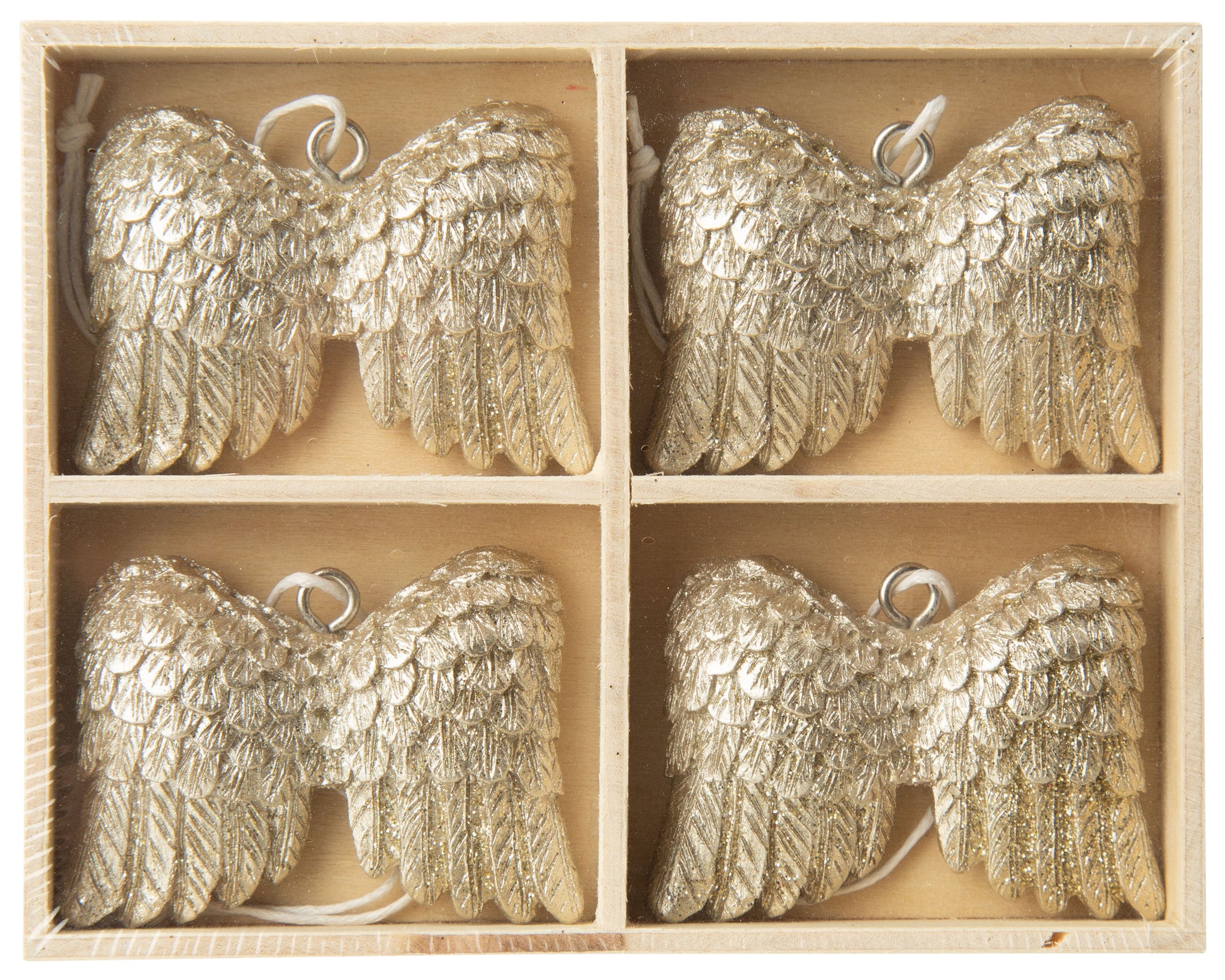 Set of 4 resin cast angel wings with champagne gold glitter.