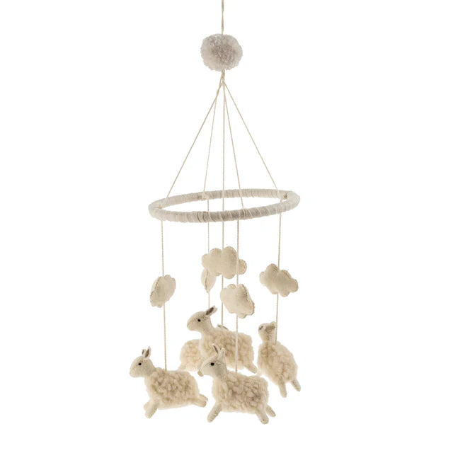 Indulge in sweet dreams with the Counting Sheep Felt Mobile. Adorable, felt sheep float under sleepy clouds, creating a soothing atmosphere to lull your little one into a peaceful slumber. This mobile serves as charming decor for both stylish nurseries and boho-inspired baby rooms.