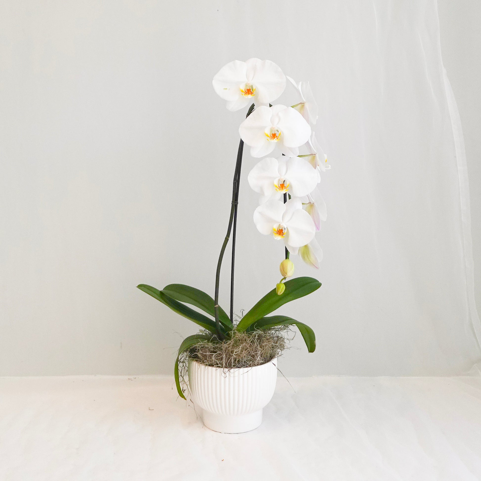 Orchids will forever hold the connotation of beauty and sophistication. Long lasting and low maintenance, they make an ideal gift for any occasion. When sending one of these lovely plants you get the added bonus of a Canadian grown product! Planted in a variety of gorgeous seasonal containers, accented with moss.