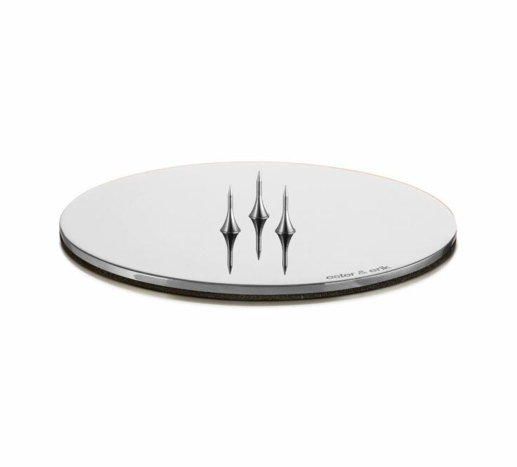 These round plates are simply and stylishly designed, and are mainly used with Ester & Erik's beautiful cone candles. The candle is held in place by three spikes, so that they sit securely. In addition, the plate has a foam backing to protect the underlying surface. As surface treatment, PVD is used. PVD treatment is a new environment friendly way to coat metals and at the same time increases the quality and finish.