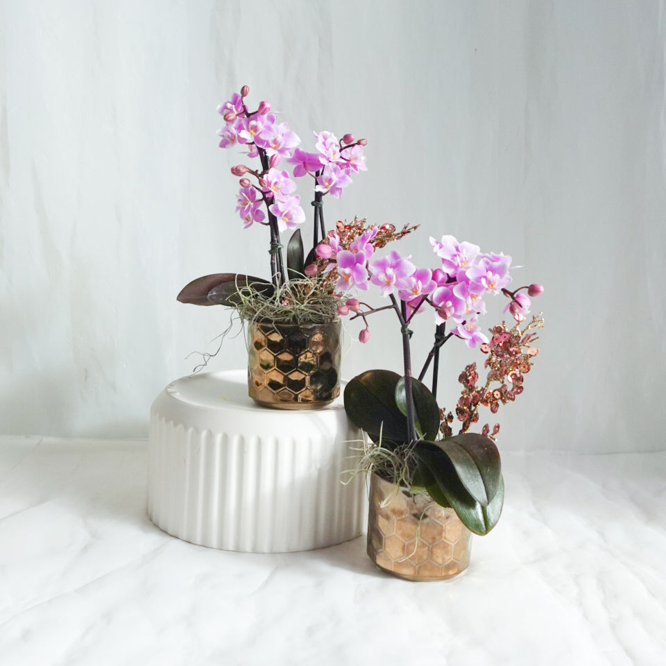 The pint-sized version of the all-time favourite! Great for small spaces, to add variety to an on-going collection, and for making a big impression with a small gesture. Dressed up with some branching, baubles and pinecones.
