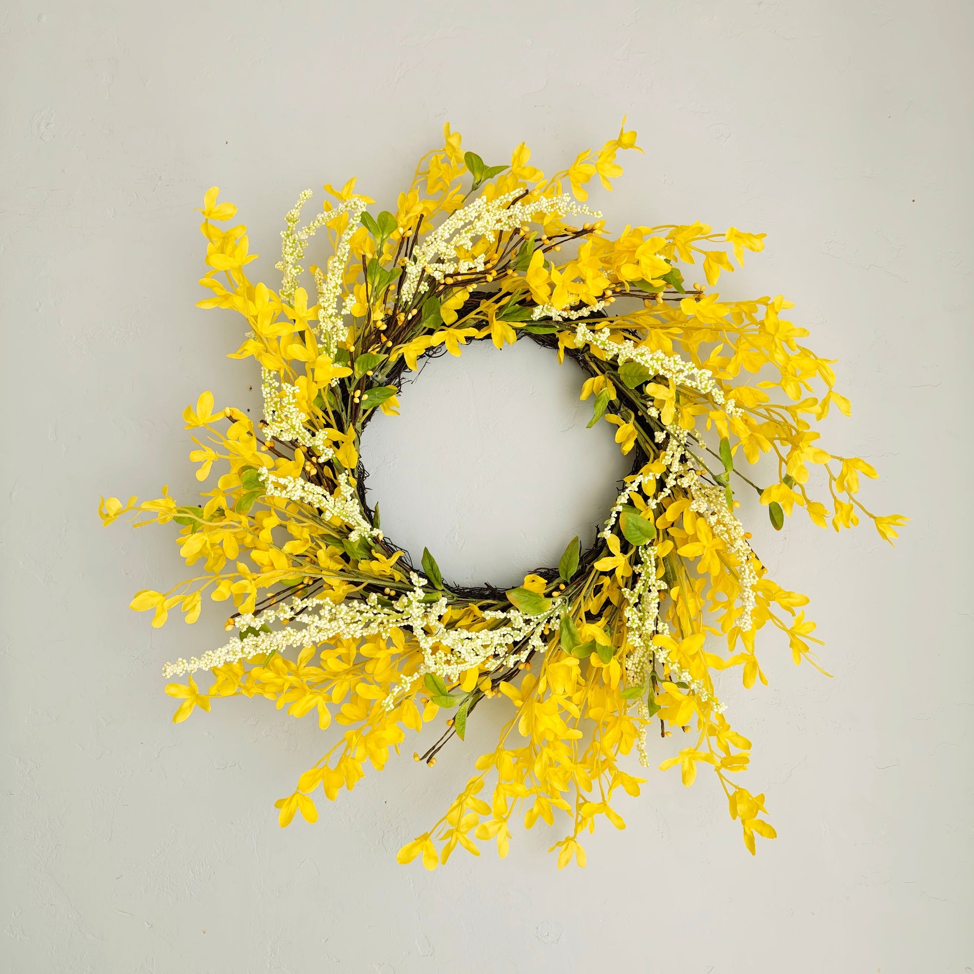 This artificial spring wreath is simple yet stunning with its bright yellow colour and minimal design.
