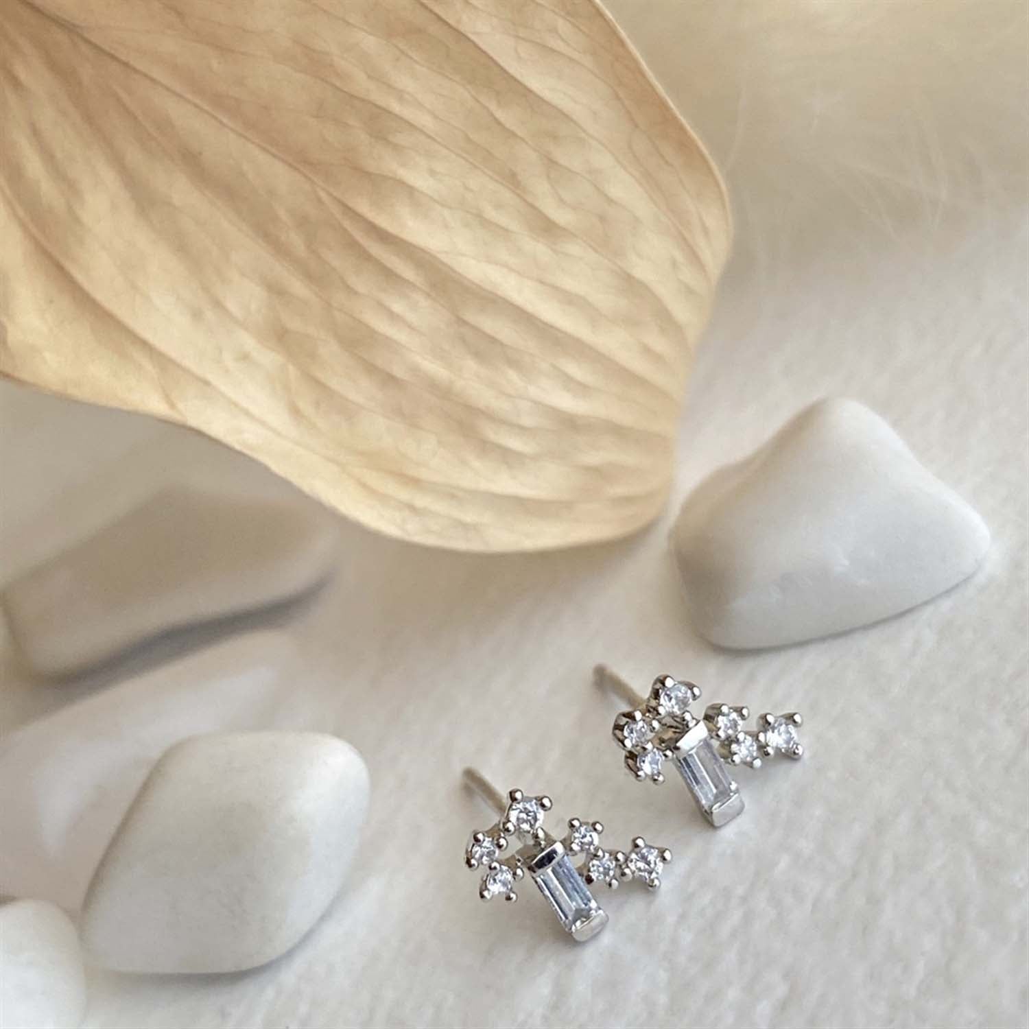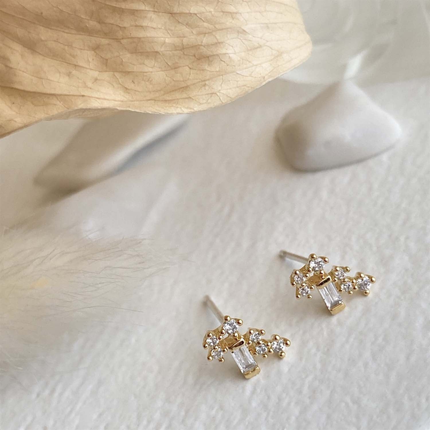 These dainty little cluster studs are a great earring for a second piercing or to be showcased as the main event! If worn as a second style, they will beautifully compliment a statement earring, but they also work perfectly to spruce up an every day look. The .925 sterling silver posts make them easy for anyone to wear for a long time.
