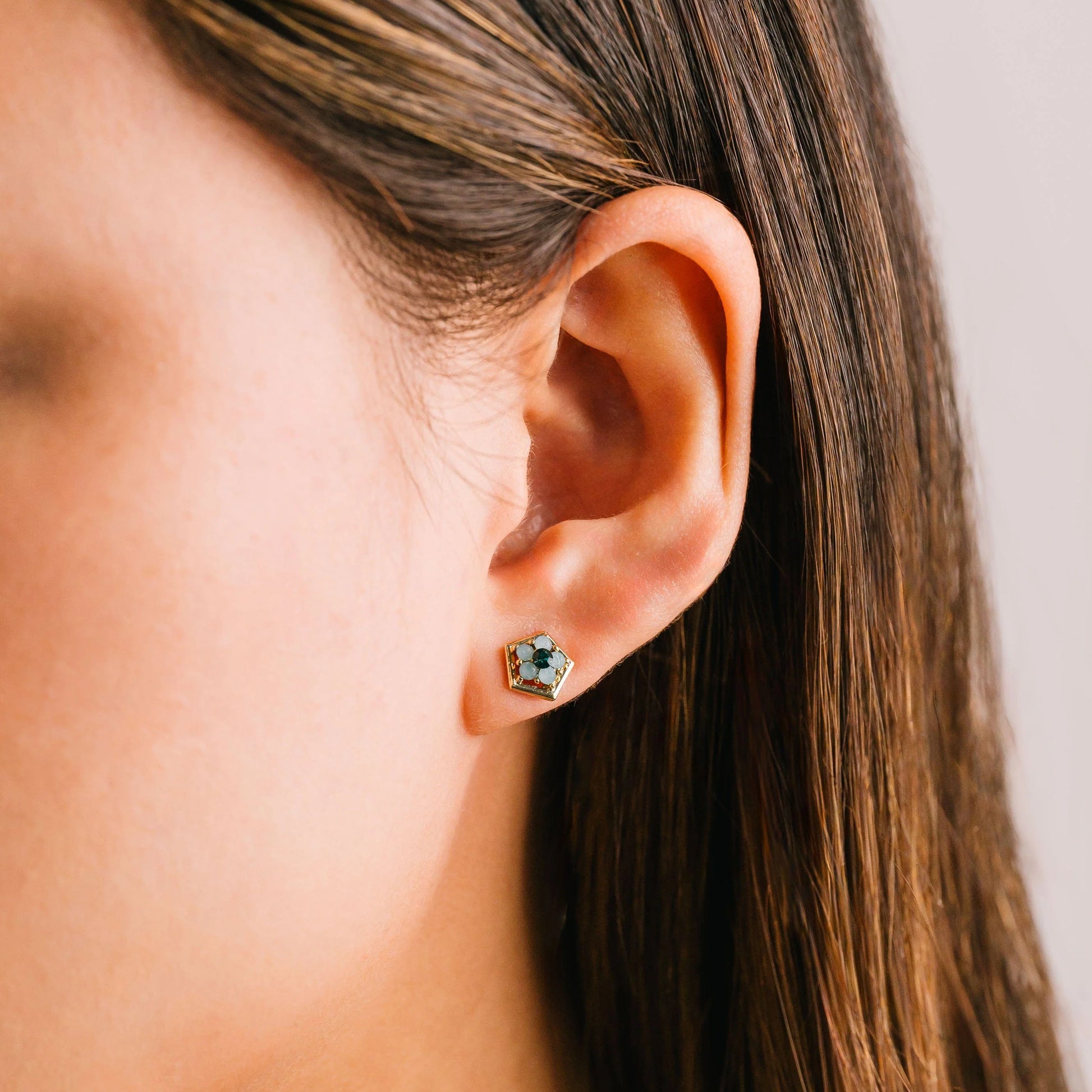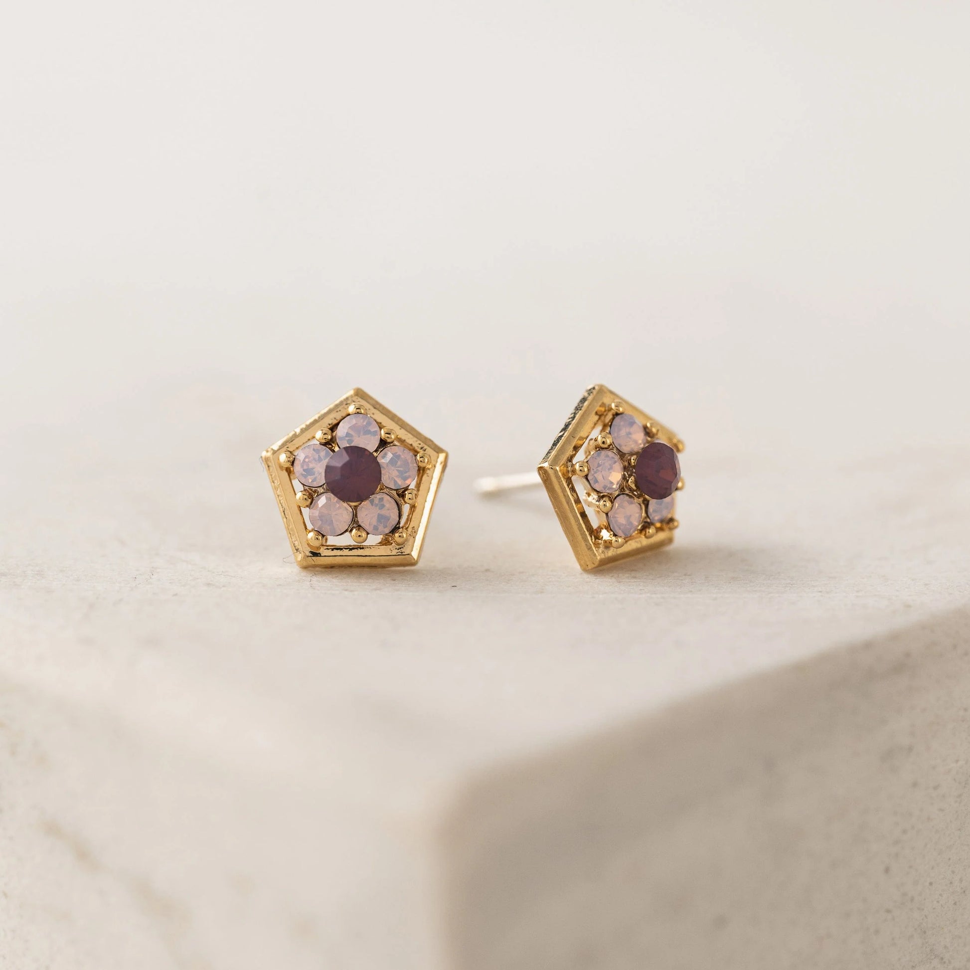A whisper of romance. A dash of colour. The sweet Anise stud features a dainty flower set in a gold vintage-esque frame.