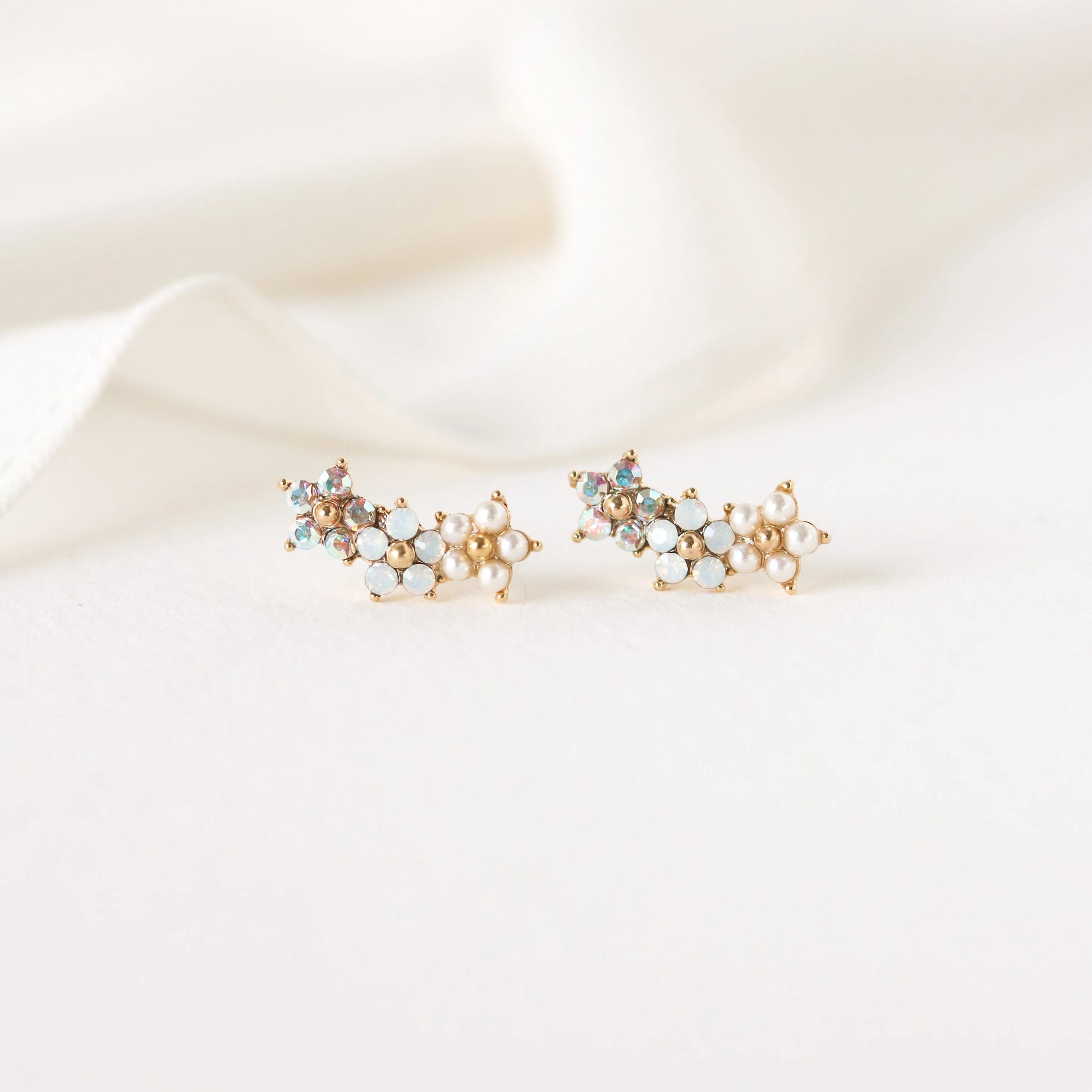 A dainty arrangement of white flowers to adorn your ears