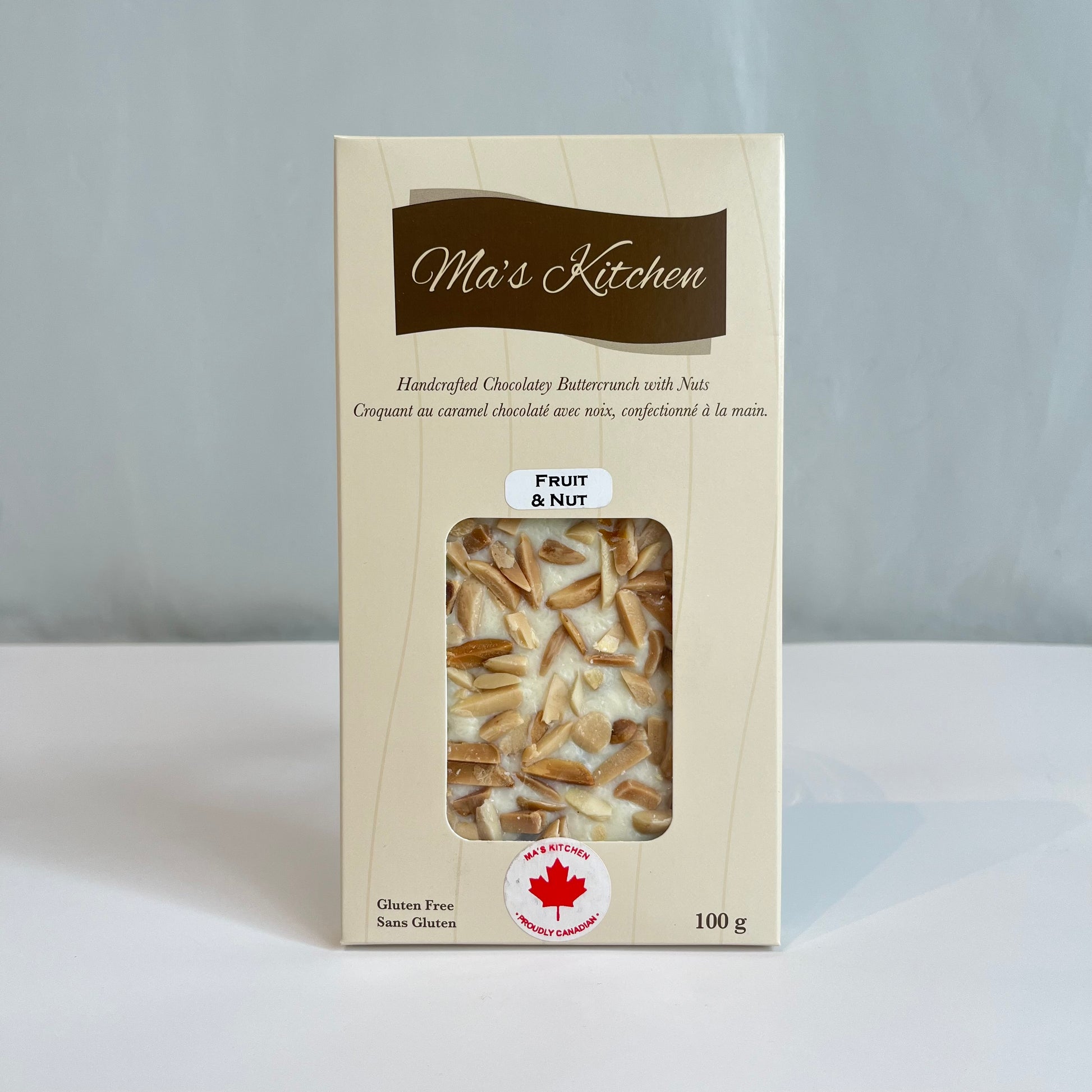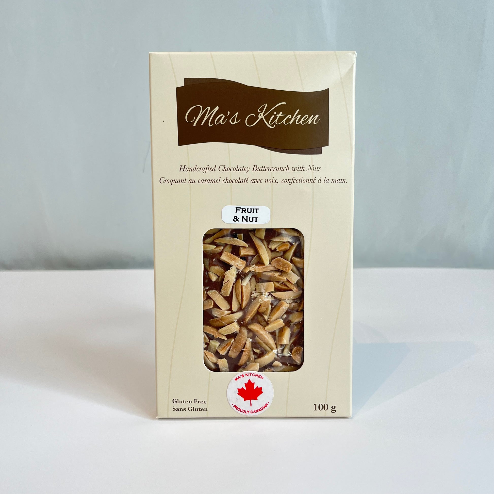 Locally made, handcrafted, chocolatey buttercrunch with fruit and nuts is perfect for a personal craving, or a small, sweet treat for someone you love. They are delicious and also gluten free!