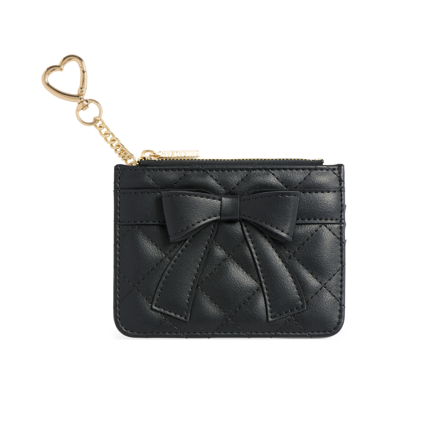 Add a touch of charm to your everyday essentials with this quilted bow card case. Featuring a soft faux leather finish, a stitched bow detail, and a gold heart-shaped keychain, it's as functional as it is adorable. Perfect for carrying cards, cash, and a little extra cuteness wherever you go.