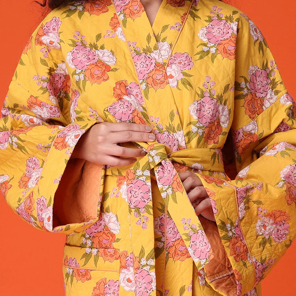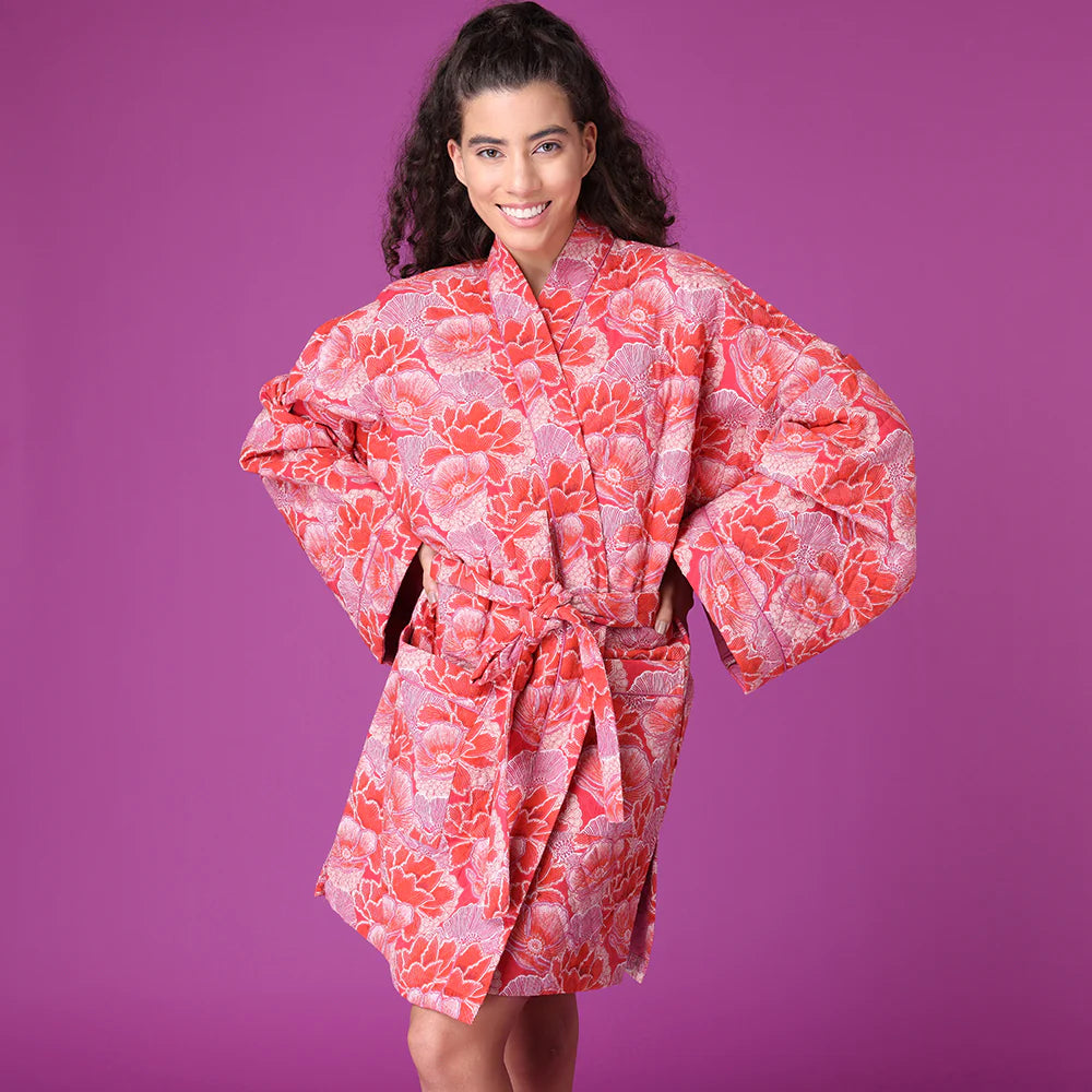 This oversized short robe is lightly quilted for extra coziness for those chilly fall days and wintery nights. Available in 2 sizes. S/M and L/XL.
