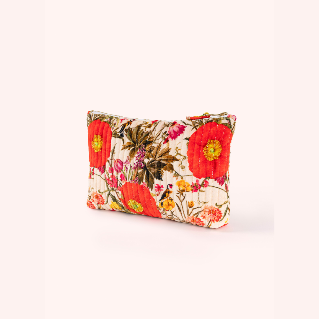 Featuring a beautiful vibrant print, this sophisticated accessory combines luxurious velvet texture with practical functionality. Perfect for organizing cosmetics, jewelry, or travel necessities, it brings a touch of elegance to any bag or vanity. The secure zip closure ensures your valuables stay protected while the sumptuous quilted design adds dimension and visual interest.
