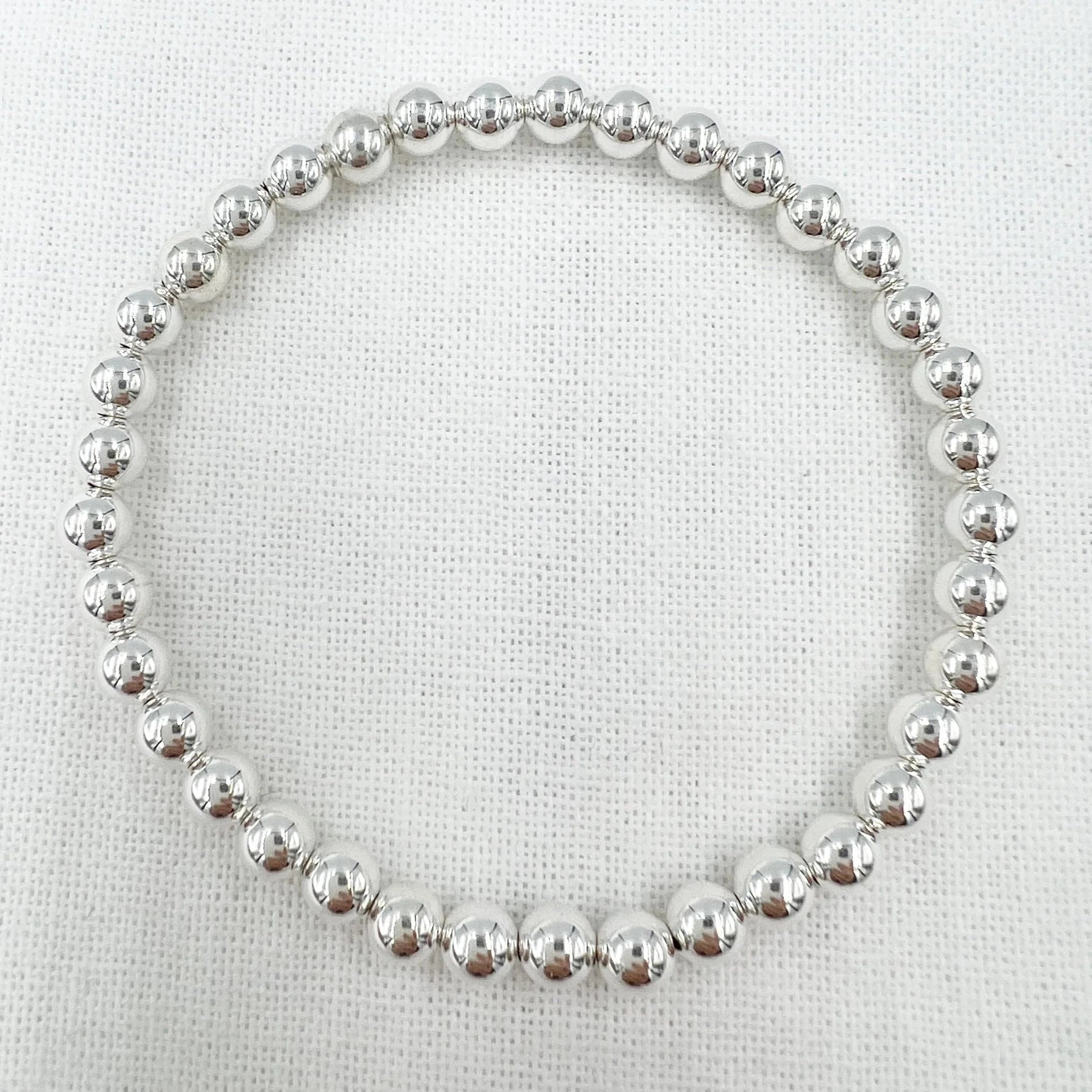 Sterling Silver 5mm beads strung on stretchy cord. Gorgeous on its own or layered. And can be left on indefinitely!