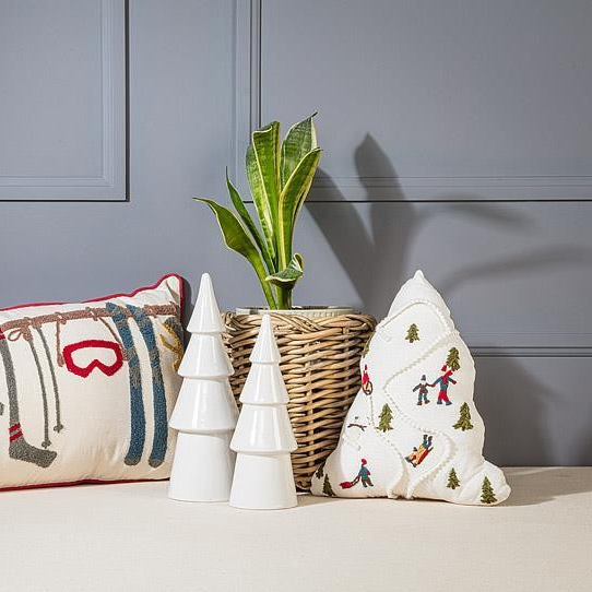 Cozy up this holiday season with the help of this Ski Scene on Tree Shape Pillow! Featuring a snow-covered mountain with trees and people having fun sledding, this plush triangular-shaped pillow brings all the warm and fuzzy vibes of a winter retreat to your sofa or couch. It’s like a little hug from the holidays!
