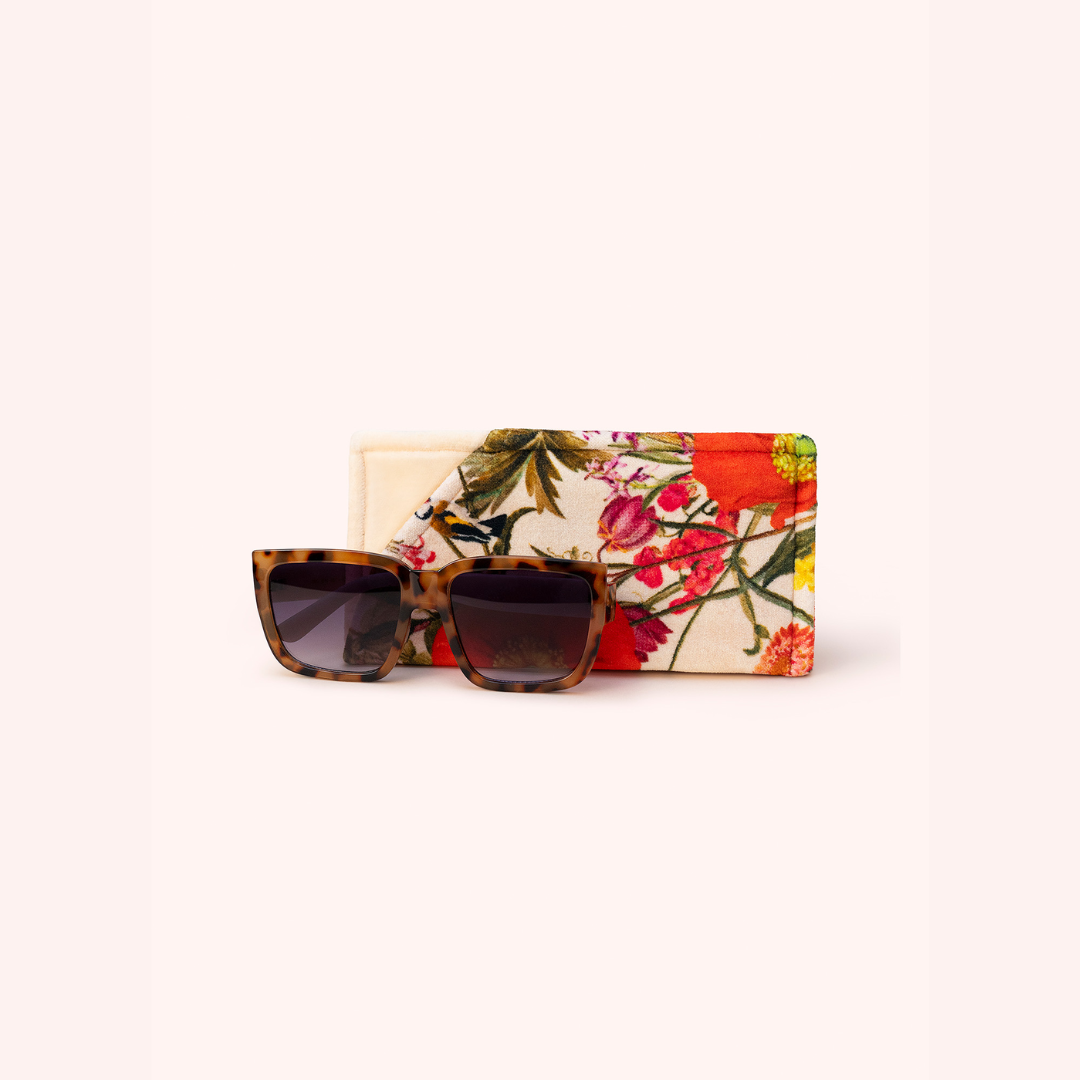 Featuring a beautiful floral print, this sunglasses pouch is sure to add practicality and fun into your everyday. Carry down to evening drinks or keep in your hand luggage so your sunglasses always feel luxurious!