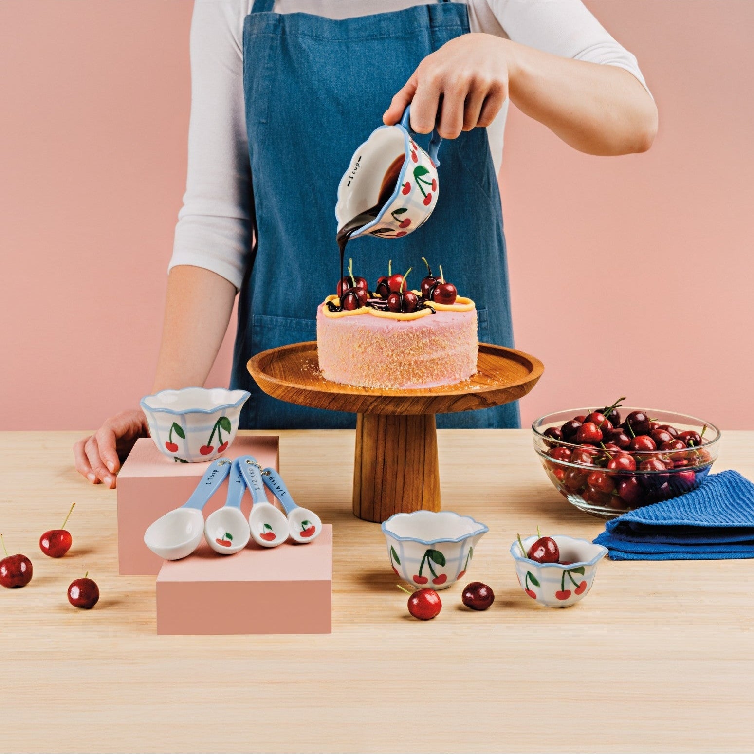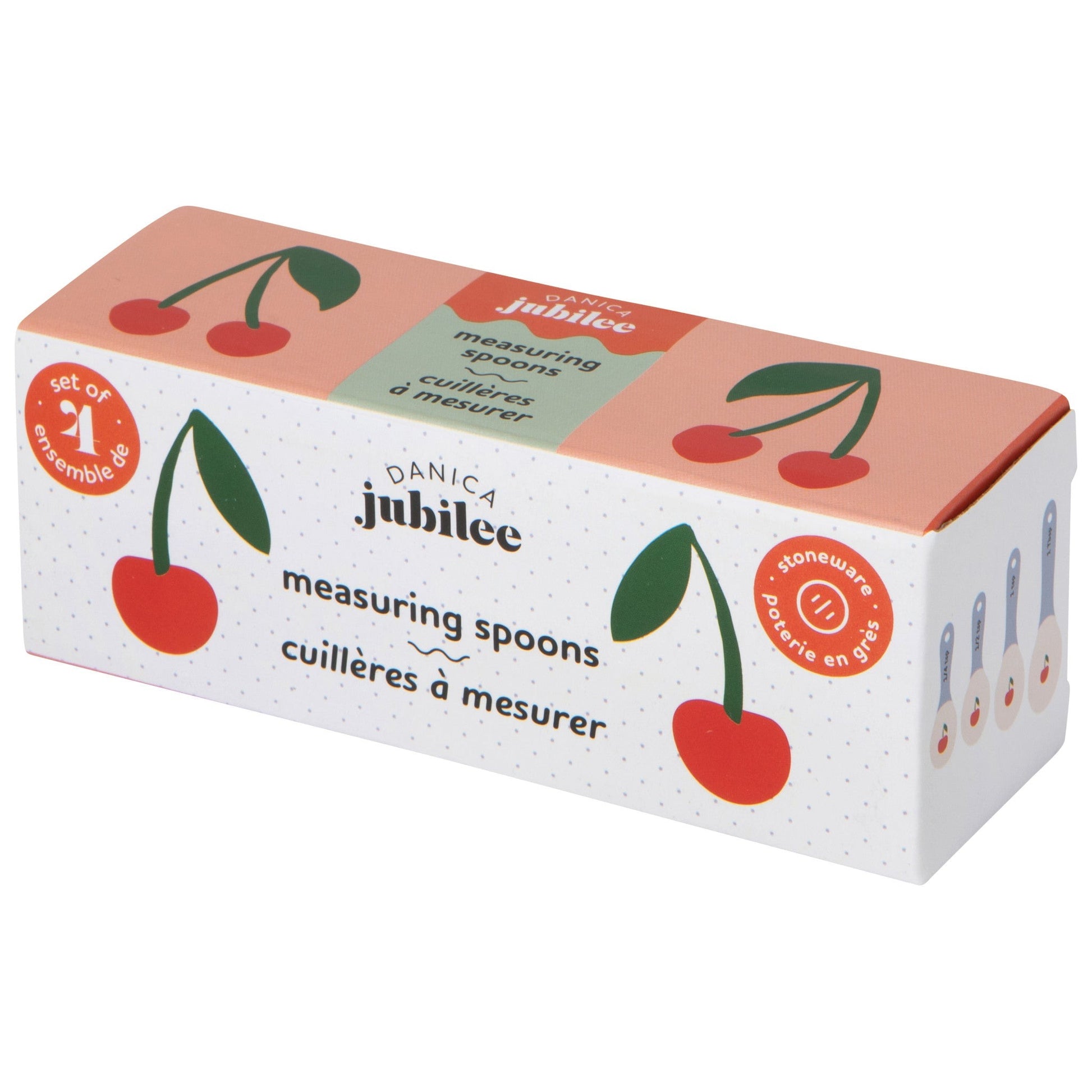 Steeped in style, these ceramic measuring spoons sweeten up baking time with hand-painted details and scalloped rims. Bright red, periwinkle plaid, and an iconic retro comeback, this Very Cherry design is the fresh and fun cherry on top of any kitchen.
