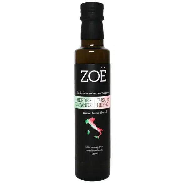 Zoë's koroneiki olives are pressed together with fresh herbs from their estate which releases the distinct aromas and oils of rosemary, garlic, thyme, and oregano. The flavours of the herbs combine beautifully with the peppery freshness of the extra virgin olive oil. Ideal for: pasta, chicken, fish, pork, potatoes, pizza, vegetables, and any salad!